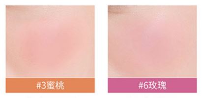 軟綿綿的格子果凍腮紅 #3 蜜桃 #6 玫瑰雙色組,質地觸感如同貓掌肉團,看似扎實又鬆軟,內含水果精華與抗氧化成份,不卡妝不褪色,輕點一下宛如牡丹盛開。
