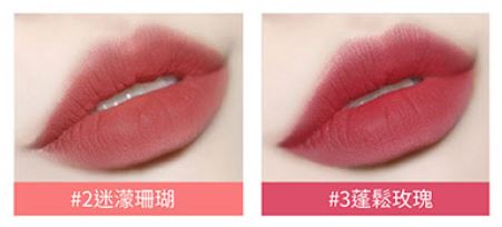 柔滑輕柔飄飄的美術課雲朵唇釉 #2 迷濛珊瑚 #3蓬鬆玫瑰雙色組,獨特的輕盈配方,解決霧面唇釉乾澀易脫皮的問題,重複疊擦也不會有厚重感,一抹微笑艷色四方