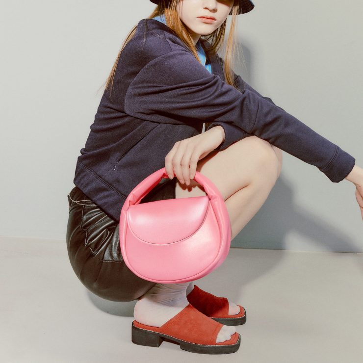 以立體感十足的Mug Bag 胖胖包為原型,設計出新款馬蹄型的手提包款式,再以翻蓋式的設計讓整體線條擁有平滑圓潤的輪廓,再將立體感延伸到揹帶,蓬鬆的設計配上青春活潑的色系,為包款注入清新、療癒,又有個性的感受。