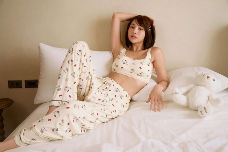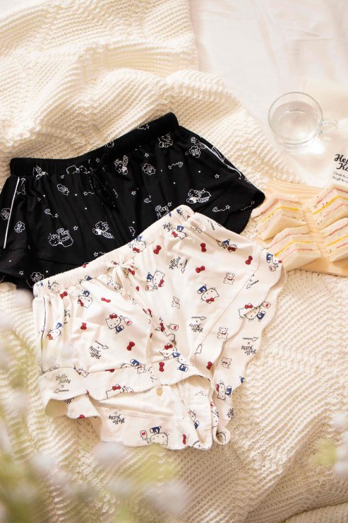 Hello Kitty聯名款上衣除了晚安推推系列之外,還推出短袖及長袖襯衫式睡衣,搭配聯名款包臀三角褲、花瓣短版睡褲,及長版睡褲,三款下著隨心情自由搭配,每晚都能擁有不同的Q萌慵懶!